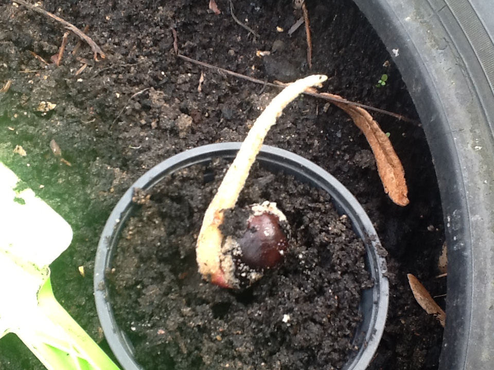 When a child found this in the sand pit outdoors, there was a great deal of discussion as to what it could be and how it had got into the sand - eventually we tracked it back to Autumn when the children had had conkers in the sand, and we realized one had sprouted. We planted it to see what would happen.